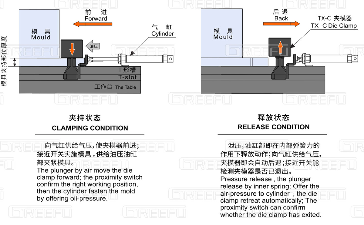 * 需根據貴司使用模具夾持部位厚度及T形槽尺寸,制作夾模器,相關參數詳見參照表或來電咨詢