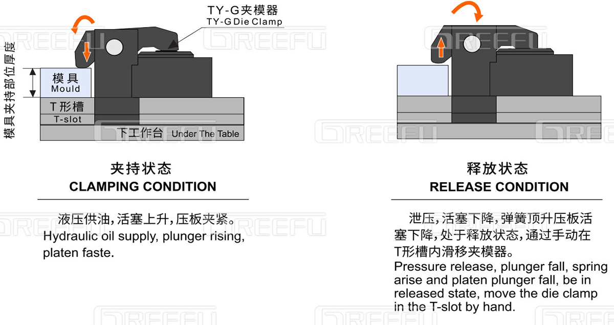 TY-G 夾模器:應(yīng)對(duì)夾持部分厚度存在偏差幅度高達(dá)±10mm,無(wú)需費(fèi)時(shí)費(fèi)力安裝墊片。