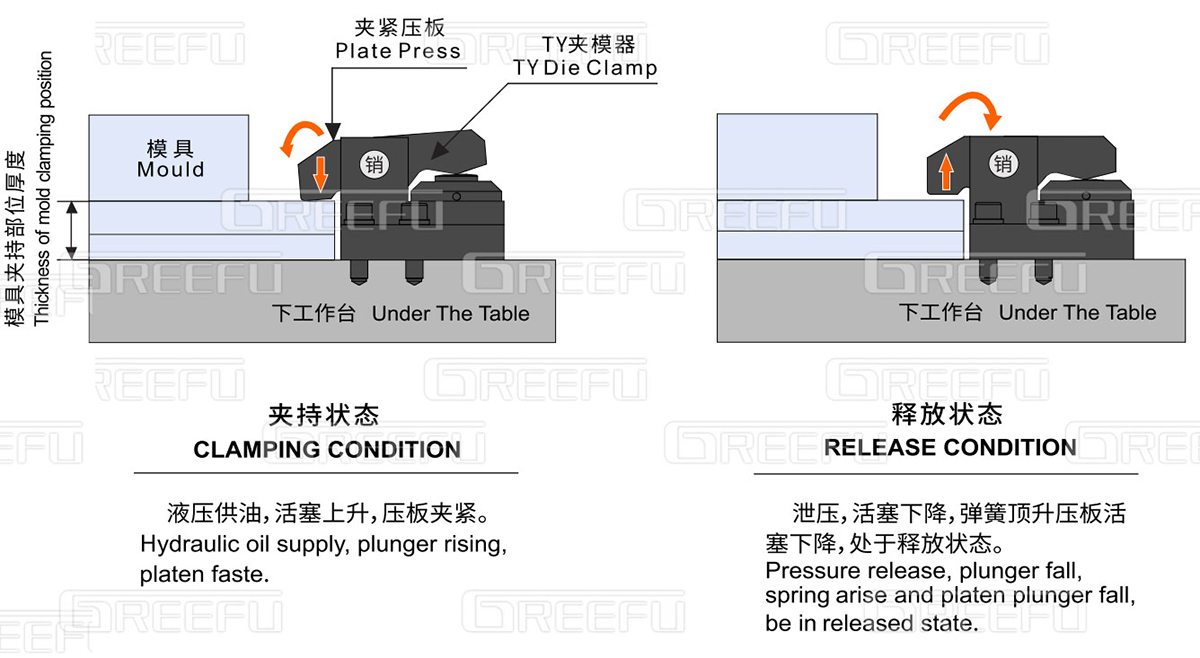 * 需根據(jù)貴司使用模具夾持部位厚度及T形槽尺寸,制作夾模器,相關(guān)參數(shù)詳見(jiàn)參照表或來(lái)電咨詢(xún)