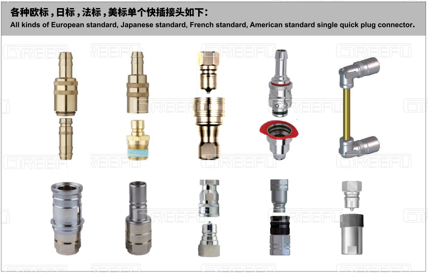單路快插連接系統:主體材質采用耐振動、耐沖擊性能好的特殊鋼。有外螺紋型和內螺紋型,壓力損失少,適應于油壓機。